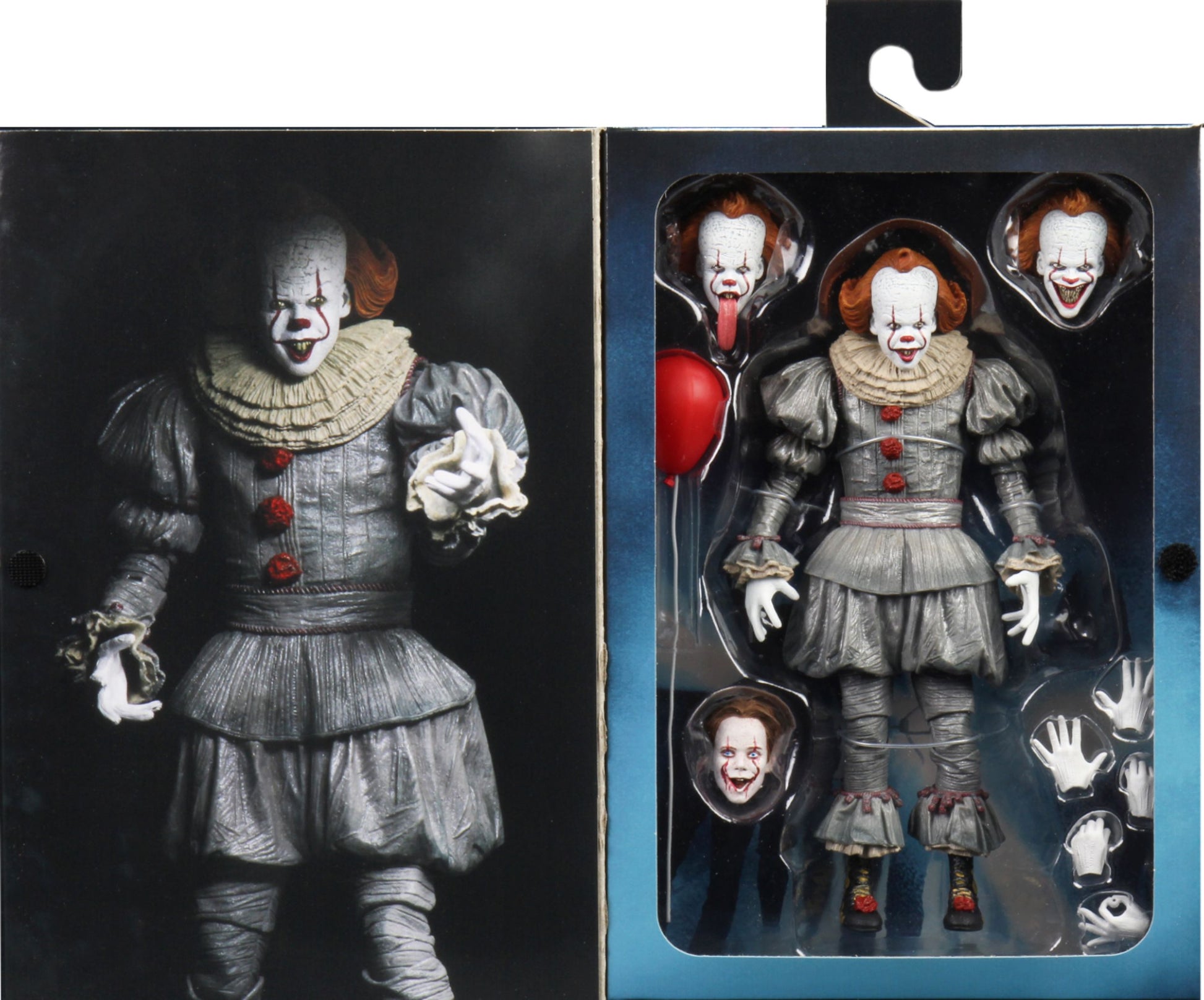 Zum Horrorfilm "Es Kapitel 2" kommt diese detailreiche Actionfigur von Pennywise. Die Figur ist ca. 18 cm groß und wird mit weiterem Zubehör und Austauschteilen in einer Fensterbox geliefert.