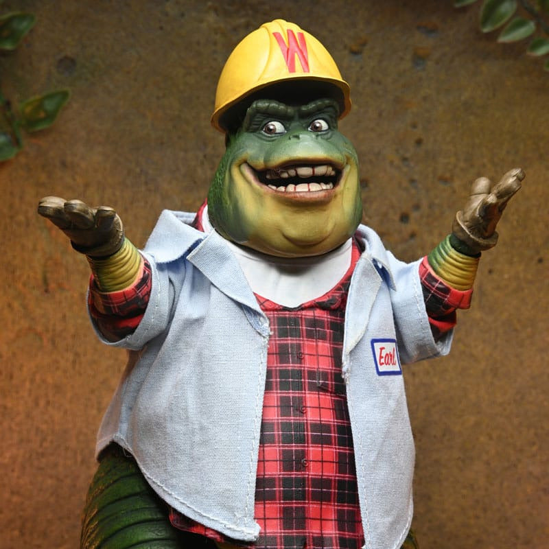 Jim Hensons Kreaturen für Dinosaurs machten diese Show Anfang der 1990er zu einem Comedy-Hit, der nachweislich immer noch aktuell ist. Jetzt können Sie mit den detailreichen Actionfiguren von NECA ein bisschen Prähistorie nach Hause holen. Diese 18 cm große Actionfigur von Earl Sinclair ist bereit für die Arbeit bei WESAYSO! Die Figur ist voll beweglich (inklusive Schwanz) und mit viel Zubehör ausgestattet: inklusive austauschbarer Köpfe, austauschbarer behandschuhter Hände, „WESAYSO“-Schutzhelm, Lunchbox, kleiner Freunde, Dosen und Arbeitshemd aus Stoff. Sammlerfreundliche Fensterbox-Verpackung mit zu öffnender Frontklappe.