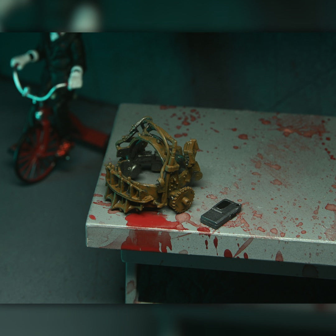 Nach ihrer Gefangennahme müssen seine Gefangenen in einem grausamen Überlebensspiel unmögliche Entscheidungen treffen, während er durch eine unheimliche Puppe mit ihnen kommuniziert. Diese 18 cm große Saw-Actionfigur im roten Gewand erhält die ultimative Behandlung: einen voll beweglichen Körper unter einem verdrahteten Stoffgewand. Zubehör: austauschbare Köpfe und Hände, Schweinemaskenkopf, Puzzle-Kopffalle, Tonbandgerät, ausfahrbare Klinge und Billy die Puppe mit Trike. Sammlerfreundliche Fensterbox mit aufklappbarer Frontklappe.