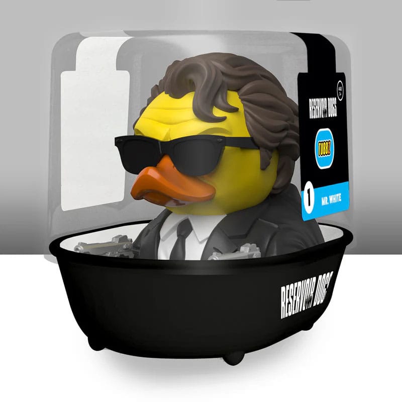 Mr. White, der gerissene und erfahrene Verbrecher aus Reservoir Dogs, bringt klassische Coolness in den TUBBZ-Ententeich. Gekleidet in seinen charakteristischen schwarzen Anzug, Krawatte und Sonnenbrille und mit Pistolen in beiden Händen, stellt dieses TUBBZ-Spielzeug der ersten Ausgabe Mr. Whites ikonische Szene aus dem Kultfilm perfekt nach.